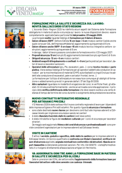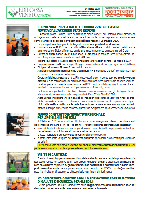 FORMEDIL ARTIGIANATO e PMI VENETO è l’ente bilaterale paritetico regionale per la formazione, la salute e la sicurezza delle imprese venete operanti nel settore dell’artigianato edile ed affini.